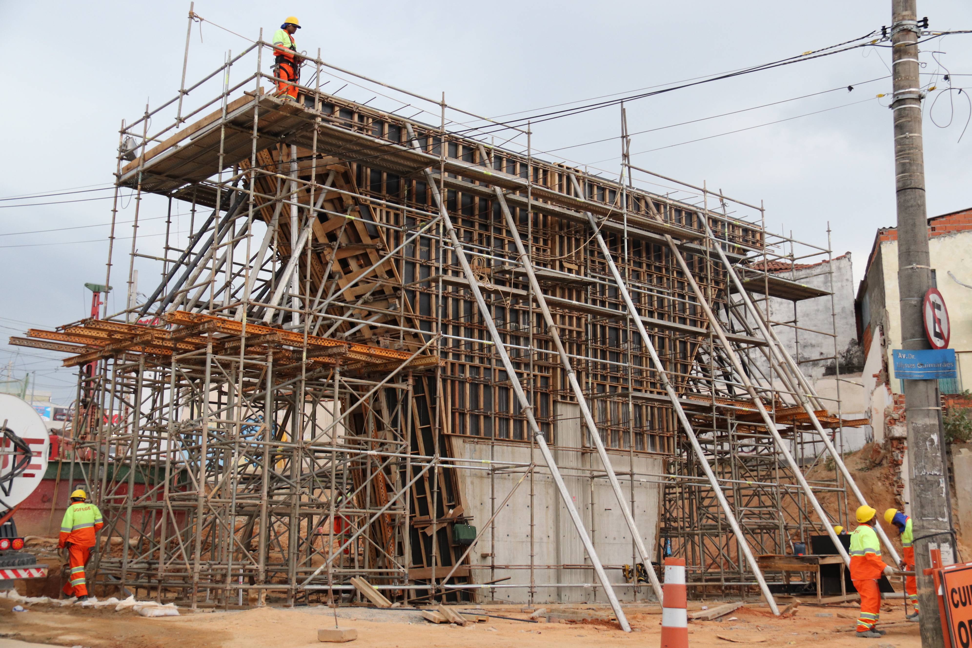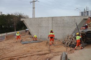 “Dos oito pilares, seis já estão prontos. A grande maioria da equipe de operários está concentrada, agora, na construção desses dispositivos de sustentação do viaduto. A cada mês, podemos identificar uma grande mudança no canteiro de obras, sinalizando o avanço das obras”, aponta Rodrigo Faria, engenheiro da UEP.