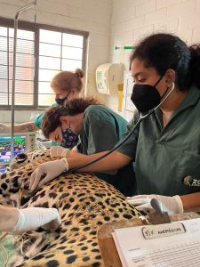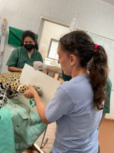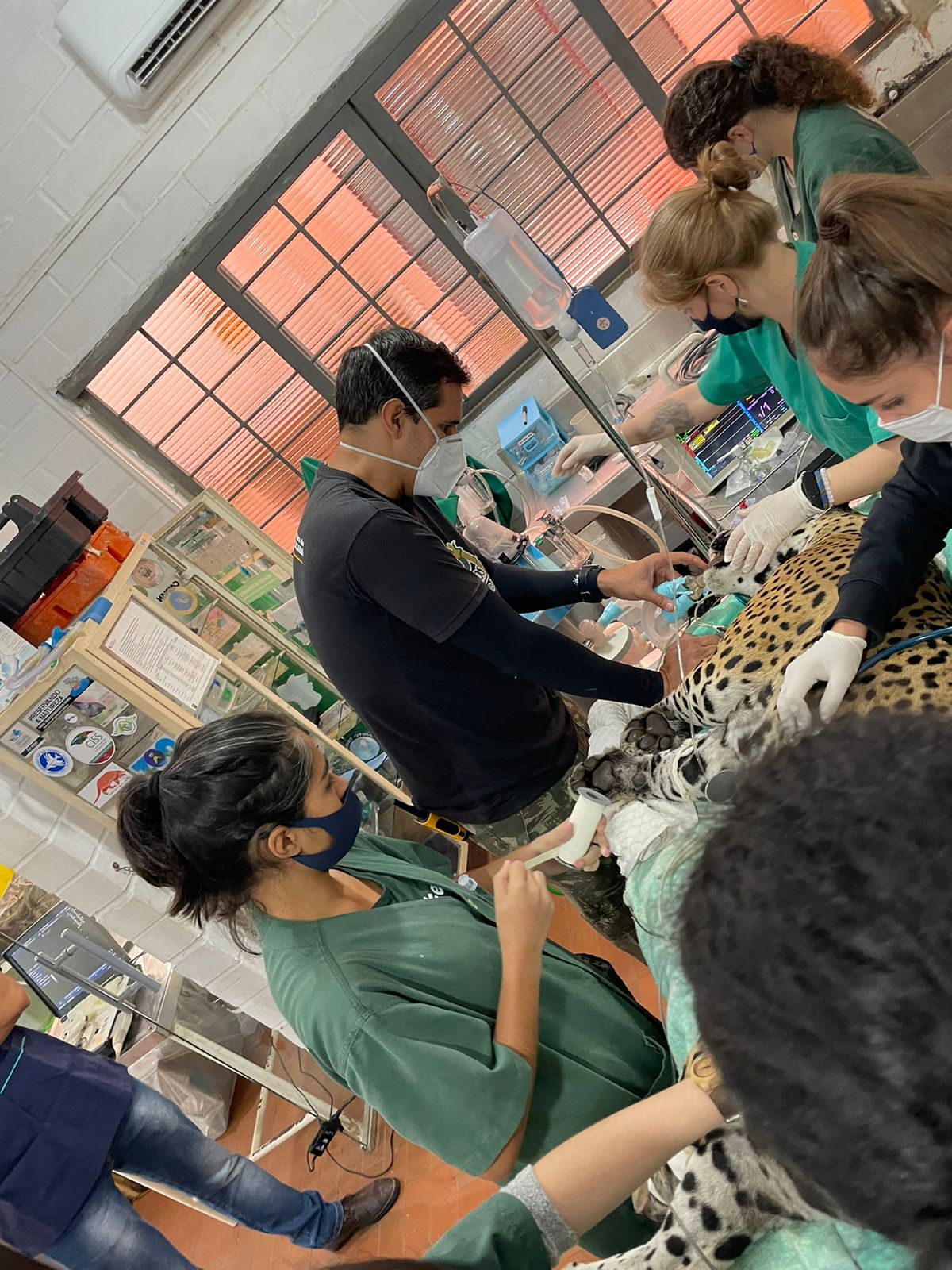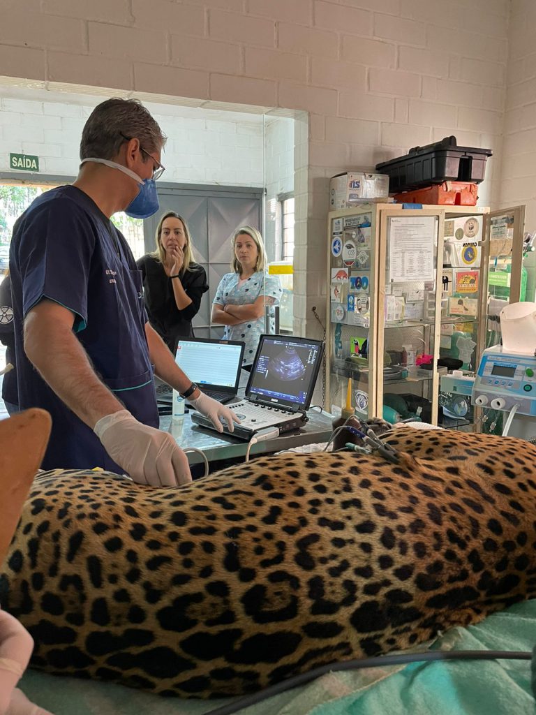 Para que pudesse ser examinada com segurança, a onça foi sedada pela equipe veterinária do Zoo. Durante o procedimento, foi realizada avaliação clínica do animal e coleta de sangue para exames laboratoriais. Além disso, foram realizados exames de imagem, como radiografia, ultrassonografia abdominal e ecocardiograma. Para completar a série de cuidados, também foi realizado tratamento odontológico de rotina.