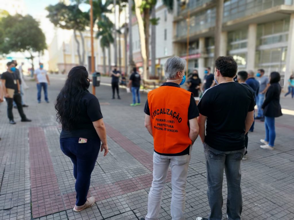A Prefeitura de Sorocaba, por meio da Secretaria de Segurança Urbana (Sesu), intensificou mais uma vez na manhã deste sábado (13) as ações da “Operação Todos Contra a Covid” em 18 pontos da área central da cidade. O objetivo da ação foi conscientizar e sensibilizar toda a população, entre comerciantes e consumidores, em relação às normas sanitárias de combate ao novo coronavírus. A força-tarefa contou com 44 servidores de diversas secretarias e aconteceu nos dias 11 e 13 de junho, das 8h às 13h30. Houve distribuição de 210 máscaras às pessoas que estavam sem o acessório.