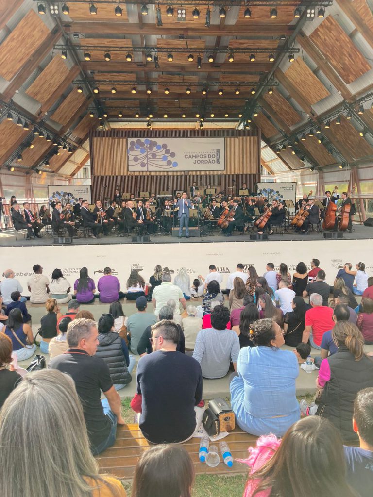A Orquestra Sinfônica de Sorocaba (OSS), sob a regência do maestro Eduardo Pereira, se apresentou, na tarde deste domingo (17), no 52º Festival Internacional de Inverno de Campos de Jordão, no Parque Capivari, em Campos de Jordão (SP). A OSS é administrada pela Fundação de Desenvolvimento Cultural de Sorocaba (Fundec), que conta com a parceria da Prefeitura de Sorocaba, por meio da Secretaria de Cultura (Secult).