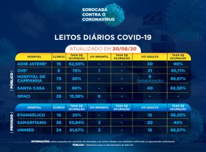 Sorocaba recebeu a notificação de mais 212 novos casos confirmados da Covid-19 nesta quinta-feira (20). Do total de confirmados, 67 estão internados (31 em UTI) e o total de pessoas em recuperação (isolamento domiciliar) é 425.