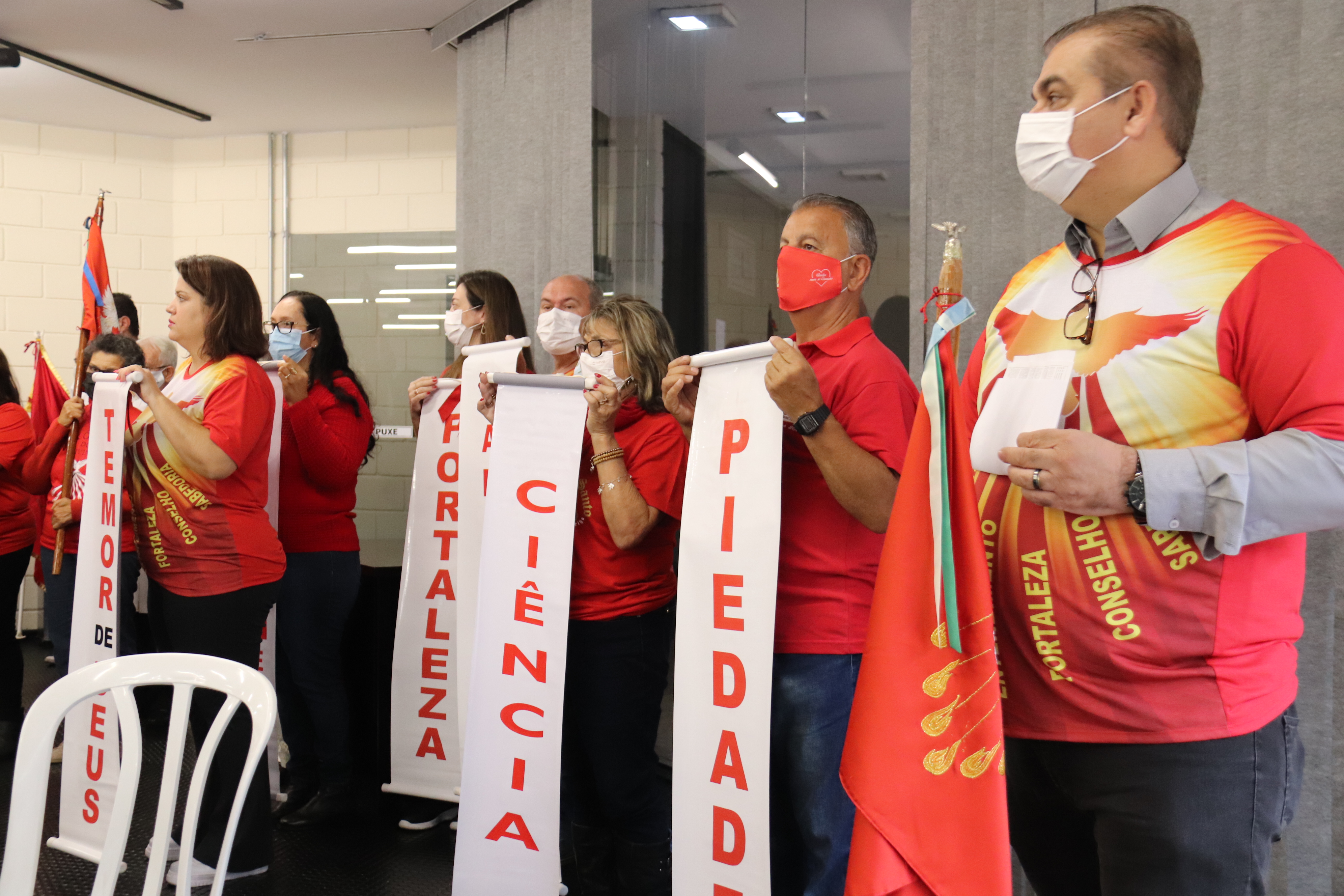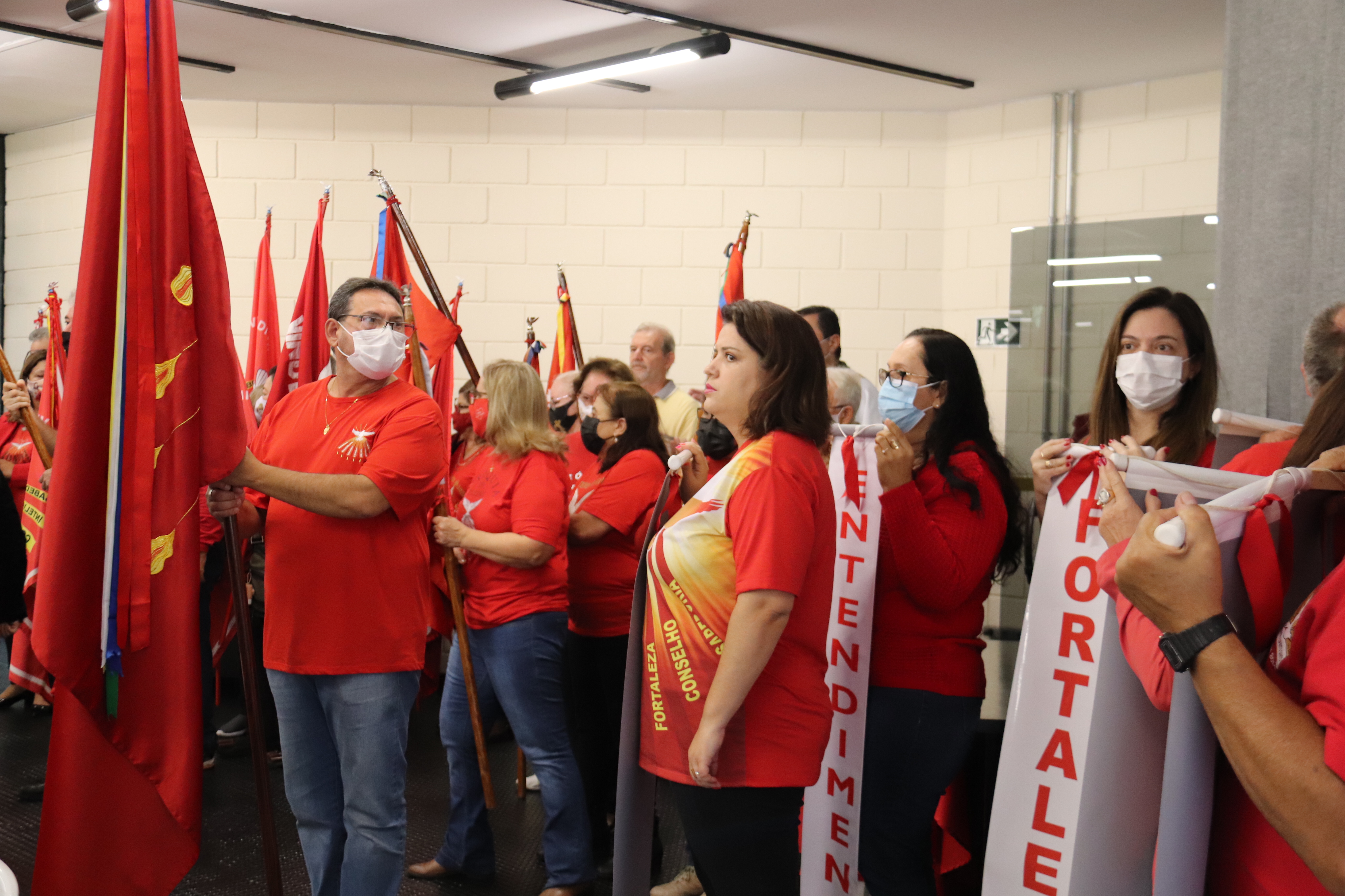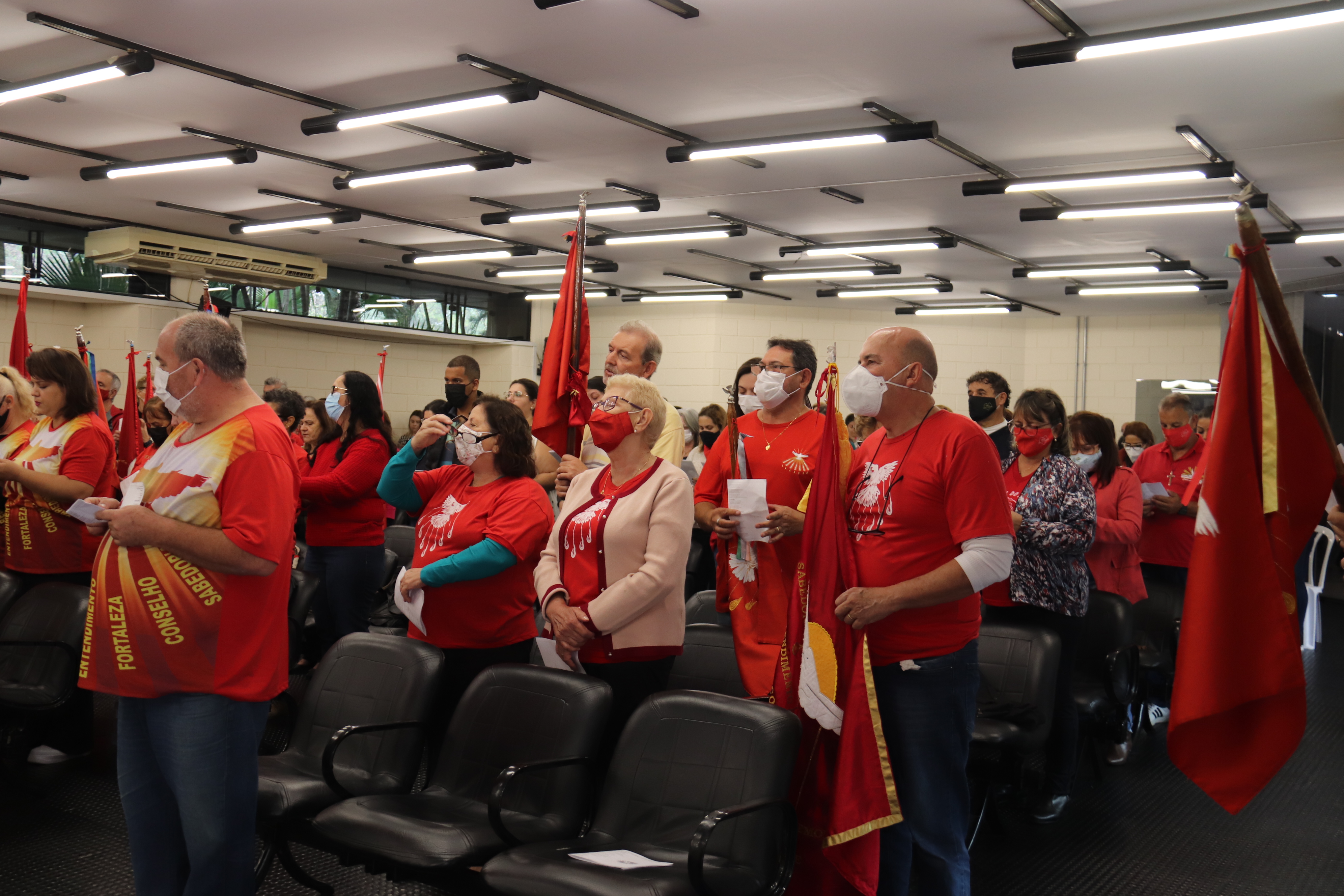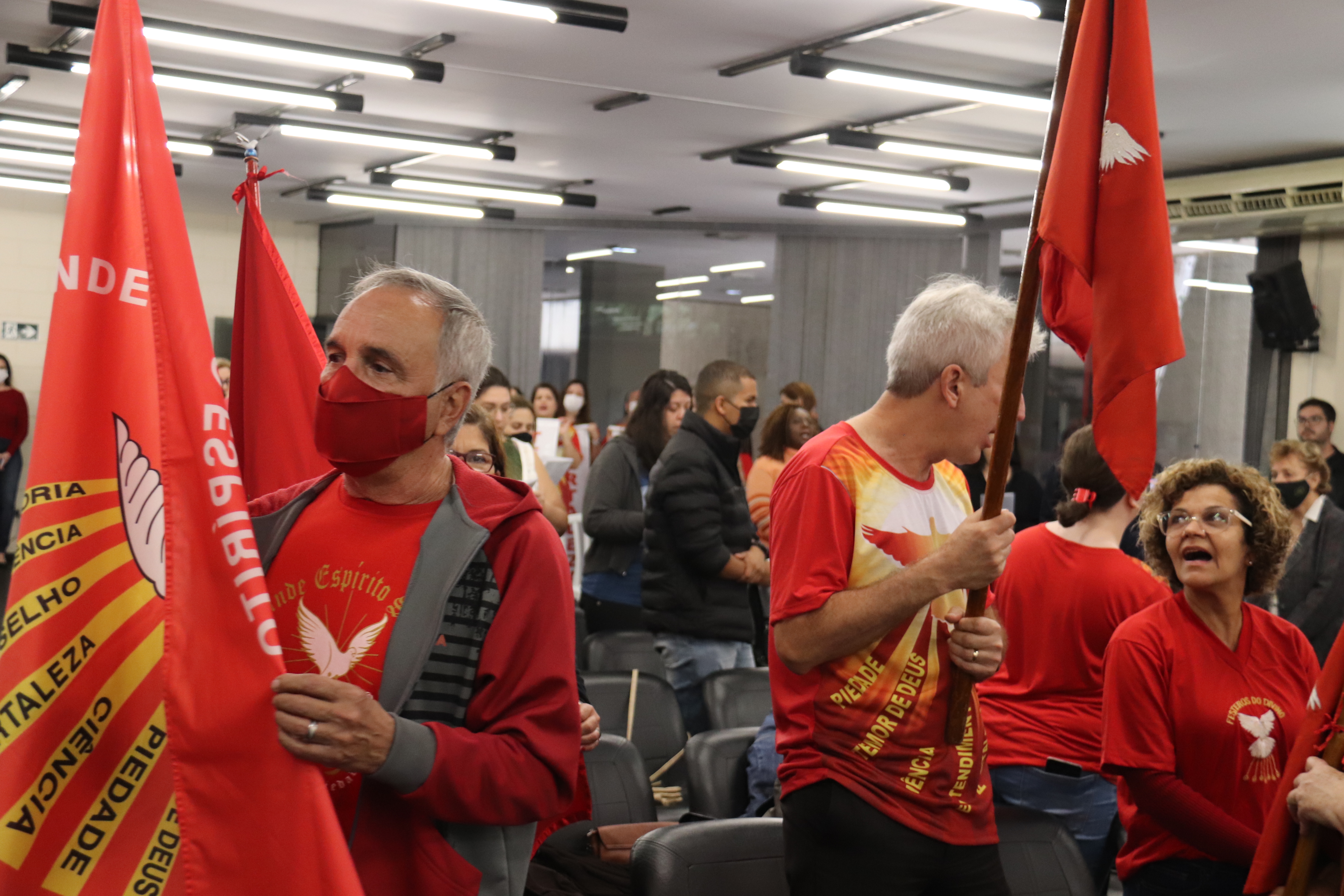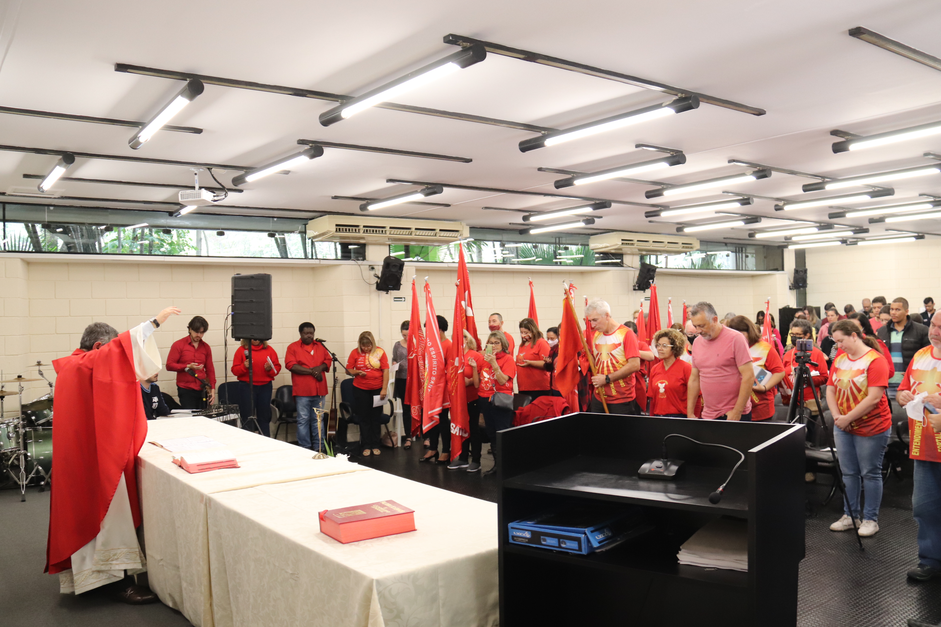 Foi realizada, no térreo do Paço Municipal, na manhã desta quinta-feira (2), a tradicional Missa de Pentecostes, ministrada pelo representante da Paróquia do Divino Espírito Santo, Padre Paulo Malzoni. A missa também teve a participação dos fiéis que vieram acompanhando a Bandeira do Divino. A celebração reuniu cerca de 130 pessoas, entre servidores públicos e fiéis da Paróquia São Carlos Borromeu e do Santuário São Judas Tadeu.
