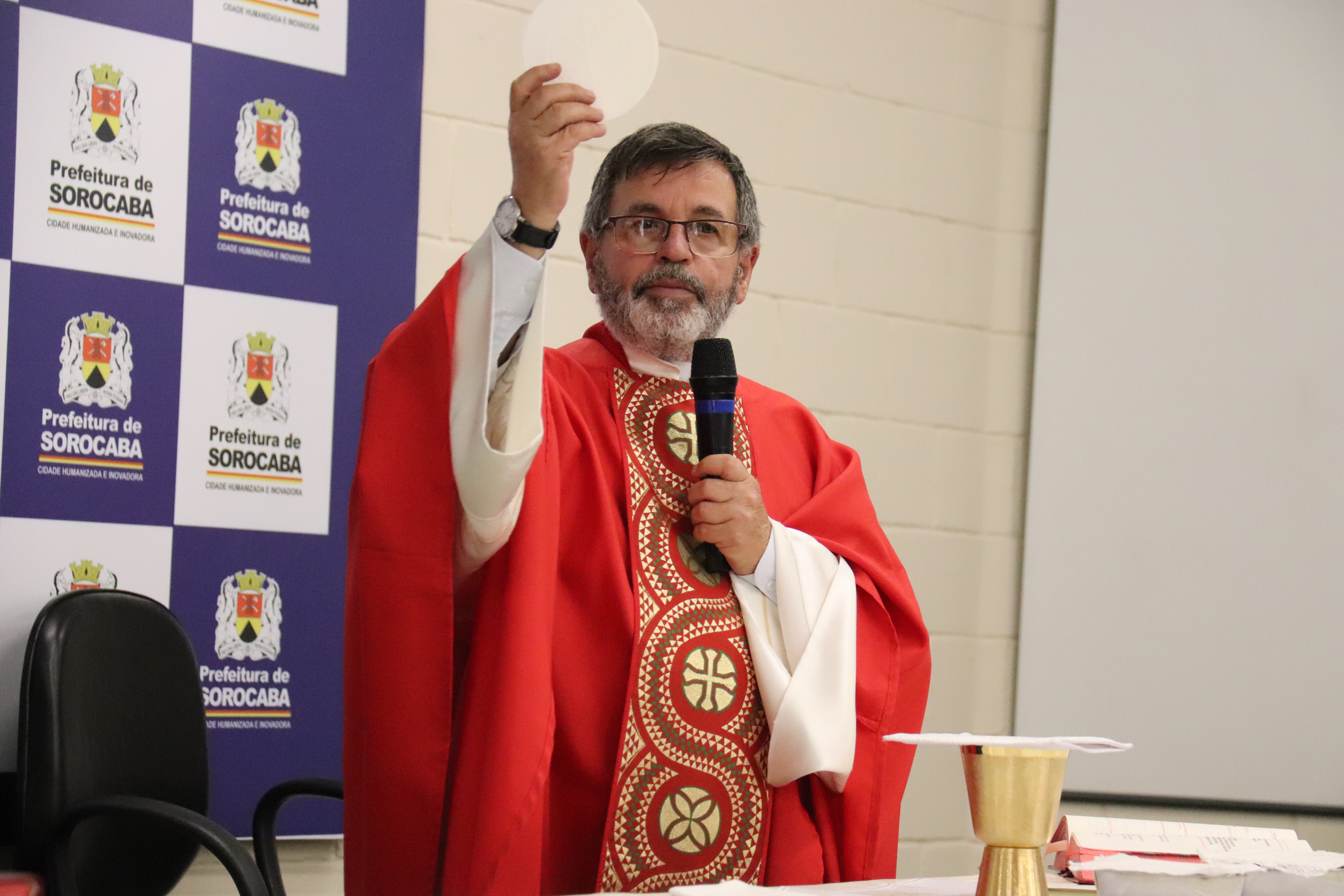 Durante a celebração da missa, o Padre Paulo Malzoni falou sobre a importância dessa data para os católicos. “Em uma data tão especial, como Pentecostes, nada melhor do que refletirmos sobre as dádivas de nossas vidas e agradecer por tê-las conosco”, disse o Padre, que também orou por todos os servidores, para que sigam abençoados e abençoando os outros em seu trabalho.