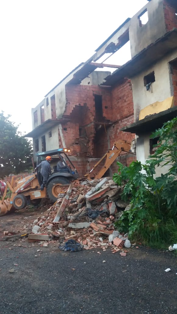 Uma retroescavadeira auxiliou na retirada dos entulhos. O prédio foi interditado, assim como uma residência localizada aos fundos do prédio, por questão de segurança. Na casa, vivem duas famílias, que serão abrigadas com familiares.