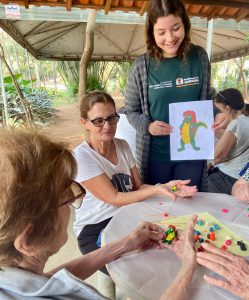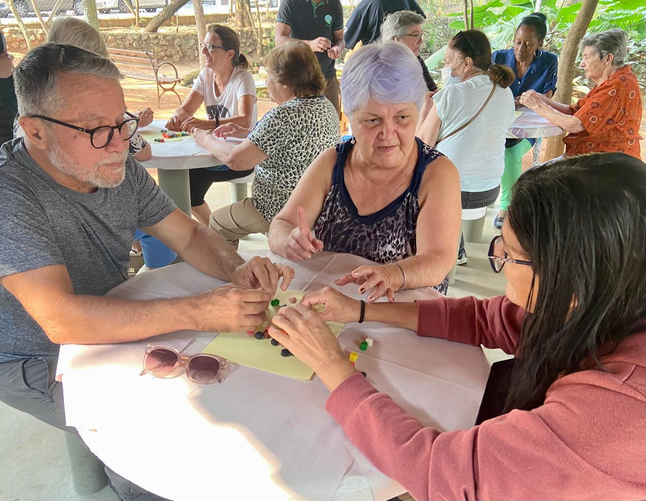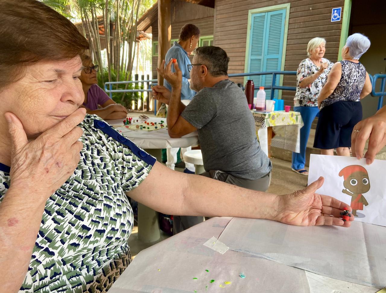 Estimular a memória, a criatividade e a coordenação motora foi o objetivo da programação gratuita do Clube Ecológico da Melhor Idade “Roda Viva”, na manhã desta terça-feira (3), no Parque da Biquinha. Os idosos tiveram a oportunidade de relembrar personagens de desenhos de antigamente, como Snoopy, Topo Gigio e o Gato Félix, em um bate-papo descontraído e, em seguida, reproduzir cada um deles utilizando massinha de modelar.