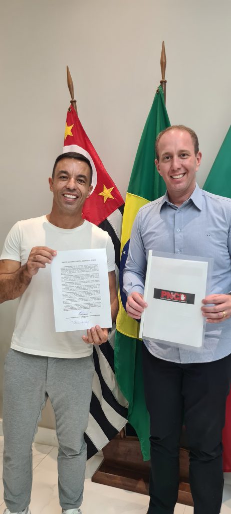 O prefeito de Osasco/SP, Rogério Lins, acaba de assinar, nesta sexta-feira (22), naquela cidade paulista, o Pacto Nacional Contra as Drogas (PNCD). O documento foi entregue em mãos pelo prefeito de Sorocaba/SP e vice-presidente de Políticas Contra as Drogas da Frente Nacional de Prefeitos (FNP), Rodrigo Manga.