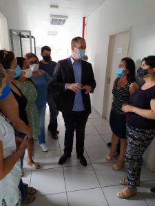 As instalações temporárias do Centro de Atenção Psicossocial Álcool e Drogas (CAPS AD III) “Saca Só” receberam a visita, na manhã desta terça-feira (12), do prefeito de Sorocaba, Rodrigo Manga, e do secretário da Saúde, Dr. Vinicius Rodrigues. Durante a ocasião, foi feita uma reunião com os servidores do CAPS para a identificação de um novo prédio, de modo que o serviço tenha continuidade com a mesma qualidade necessária.