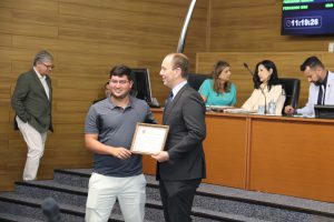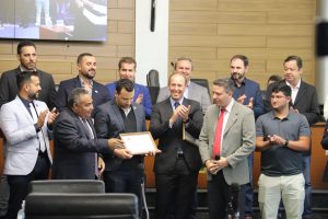 Na ocasião, o prefeito também recebeu Votos de Congratulações da Câmara Municipal, pela passagem do seu aniversário de 43 anos, no último dia 31 de janeiro. A iniciativa partiu de requerimento do presidente do Legislativo. “Manga fez um excelente trabalho na Câmara e, agora, à frente do Executivo. E que continue trabalhando em prol do nosso povo”, complementou o presidente do Legislativo.