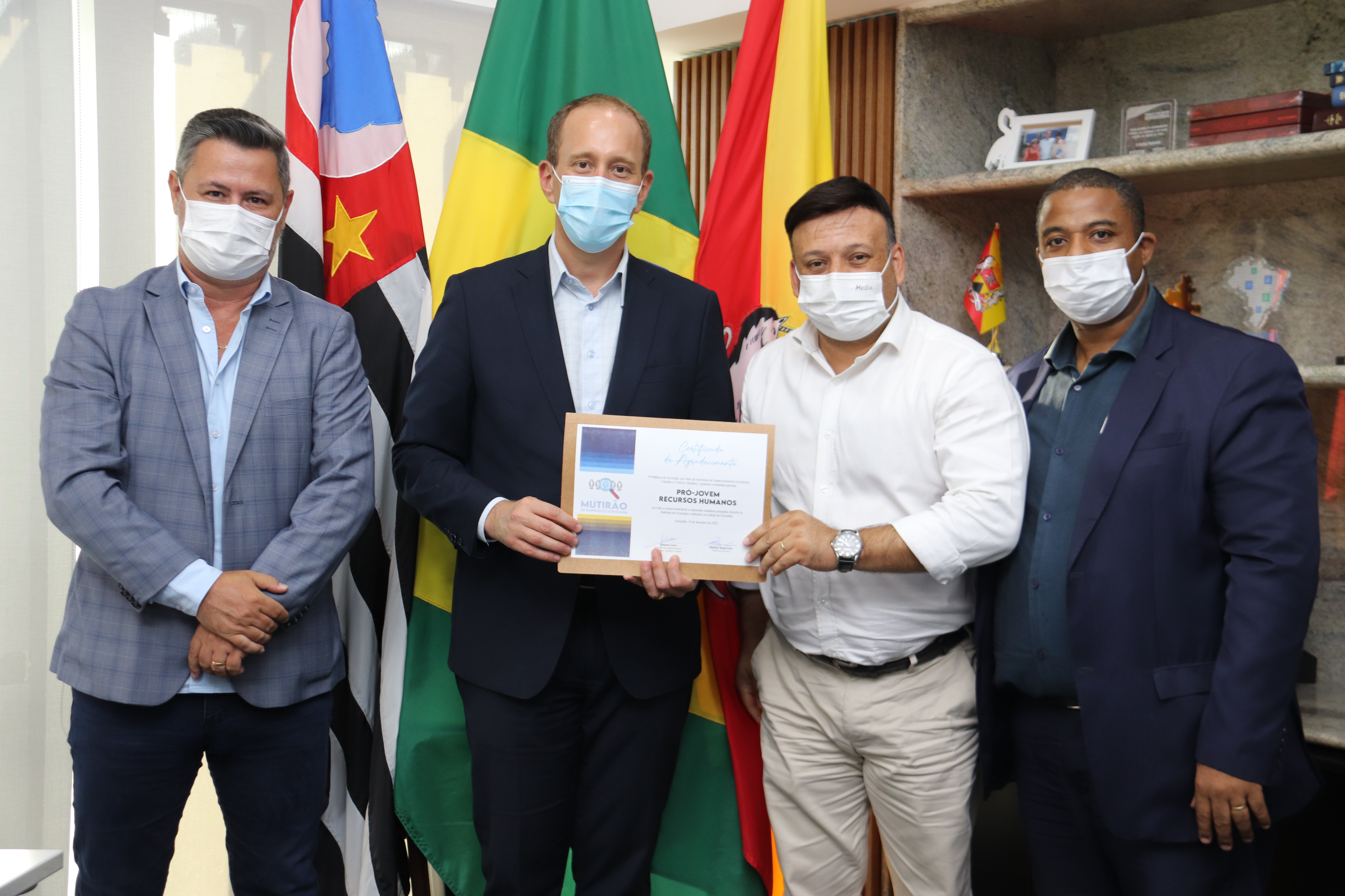 O prefeito Rodrigo Manga recebeu, nesta quinta-feira (10), em seu gabinete, no sexto andar do Paço Municipal, representantes de 23 agências de Recursos Humanos, parceiras da Prefeitura de Sorocaba nas edições do Mutirão de Empregos Sorocaba, realizadas no ano passado. O objetivo foi de reconhecer e agradecer a cada uma delas pela colaboração fundamental nesta iniciativa municipal, que visa oferecer orientação gratuita, além de oportunidades para quem busca recolocação profissional ou o primeiro emprego.