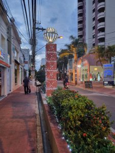 Vários pontos de iluminação, junto a floreiras que cercam as ruas do Centro Comercial da cidade, têm recebido decoração especial natalina pela Secretaria de Serviços Públicos e Obras (Serpo). Também na quinta-feira, foi a vez das ruas Arthur Gomes e Penha receberam esse brilho extra.