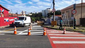 No local, foram implantadas três placas de trânsito e 23 metros quadrados de sinalização de solo, informando sobre a mudança no fluxo, que tem como objetivo melhorar a circulação viária nessa região do município.