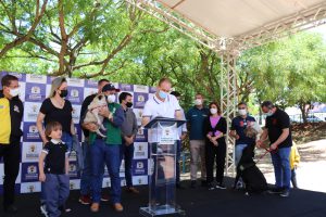 Foram apresentadas também duas novas unidades móveis: a da Patrulha Animal, que vai realizar a fiscalização de denúncias de animais vítimas de maus-tratos; e a do Resgate Patrulha Animal. “Esta segunda será para casos de urgência e emergência de resgate de animais em situação de alto risco, seja por atropelamento, maus-tratos ou gravemente debilitados por doenças”, explicou o secretário de Meio Ambiente, Proteção e Bem-Estar Animal (Sema), Antonio Prieto Neto.