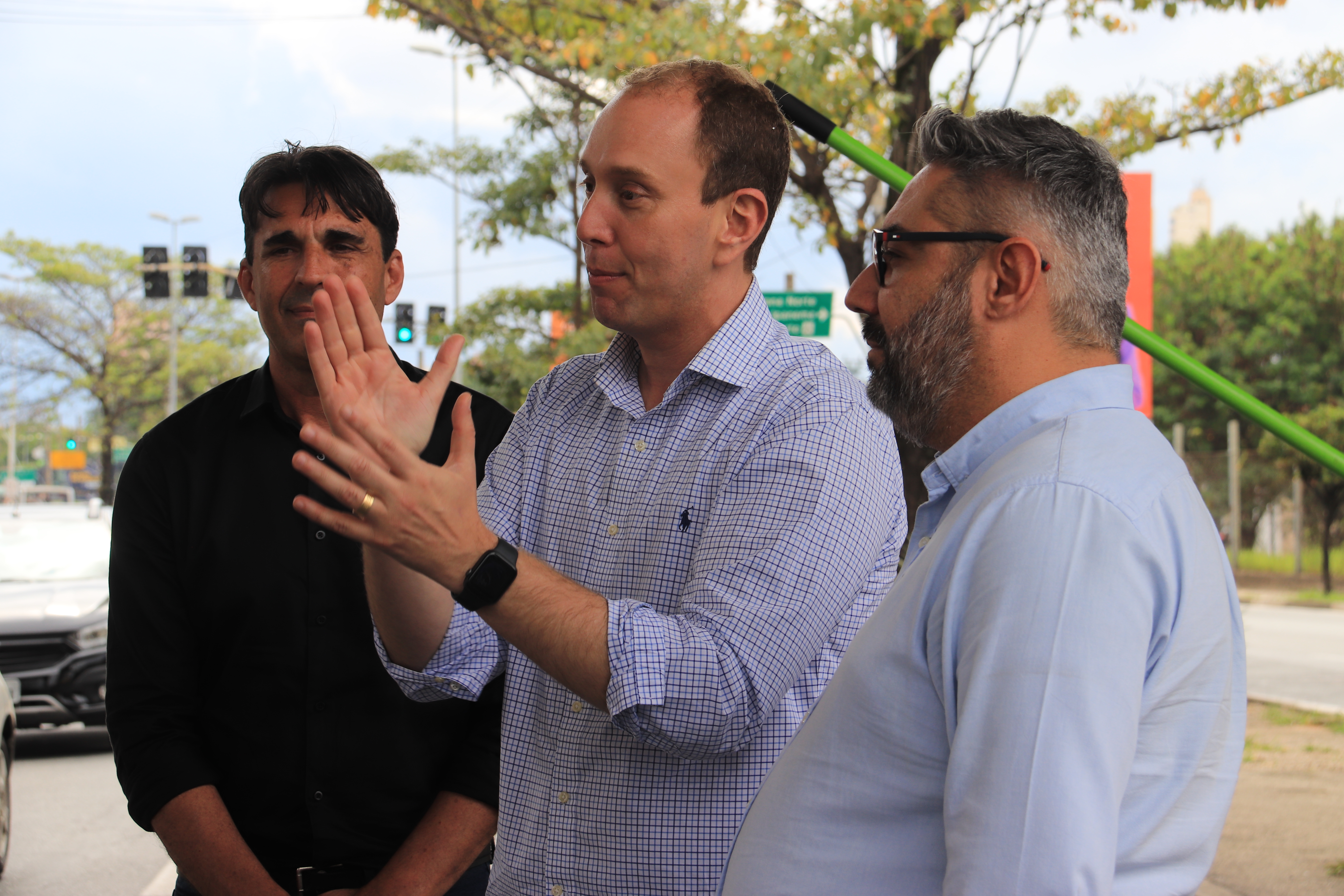 O prefeito Rodrigo Manga, mais o secretário da Semob, Carlos Eduardo Paschoini, e o diretor-presidente da Urbes -Trânsito e Transportes, Sergio Barreto, acompanharam o pontapé inicial dos serviços, nas proximidades da Avenida Afonso Vergueiro e da Rua Comendador Oeterer.