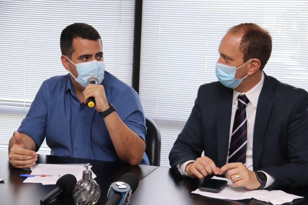 O prefeito de Sorocaba, Rodrigo Manga, ao lado do médico e secretário da Saúde, Dr. Vinicius Rodrigues, apresentou, na tarde desta quinta-feira (3), um balanço das ações realizadas na área da Saúde e divulgou novas medidas a serem adotadas em benefício da população. O anúncio foi realizado durante coletiva de imprensa, no sexto andar do Paço Municipal, e também contou com a presença do vereador Cristiano Passos.