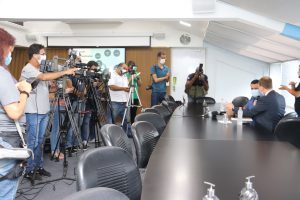 Na coletiva de imprensa, o prefeito Rodrigo Manga e o secretário Dr. Vinicius apresentaram um balanço das ações realizadas na área da Saúde, durante os 14 meses de gestão até o momento, e também divulgaram medidas que já estão em andamento e futuras.
