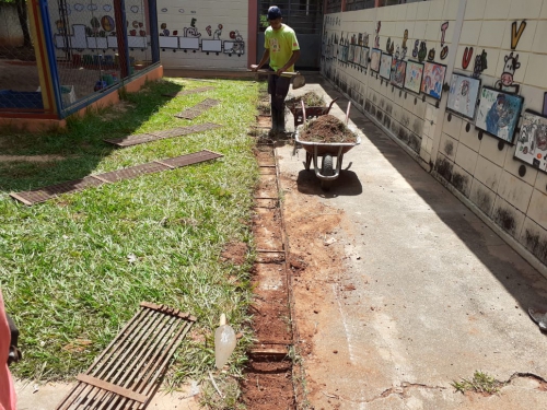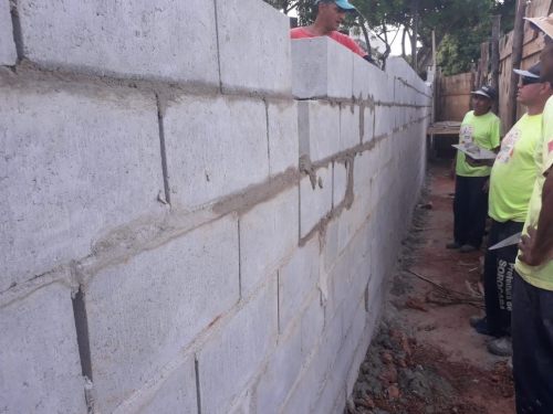 O serviço de reconstrução começou com a mão-de-obra dos funcionários da própria secretaria (Serpo) e ganhou um reforço com o auxílio dos “Reeducandos”, por meio de uma parceria da Prefeitura de Sorocaba com a Fundação Prof. Dr. Manoel Pedro Pimentel “FUNAP” e a Penitenciária Dr. Danilo Pinheiro. Além da reconstrução do muro, os “Reeducandos” realizaram a limpeza das canaletas da escola, para evitar água parada e proliferação do mosquito da dengue.