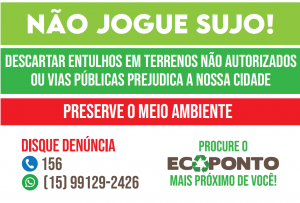 Denúncias sobre terrenos com mato alto, entulho ou lixo podem ser feitas pelos telefones 156 ou (15) 3238-2159 ou, ainda, pelo WhatsApp: (15) 99129-2426.