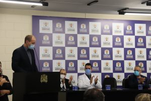 O prefeito de Sorocaba, Rodrigo Manga, divulgou, na tarde desta quinta-feira (11), novas melhorias para a área de saúde pública da cidade. Por meio de uma coletiva de imprensa e solenidade, realizada no Salão de Vidro do Paço Municipal, o chefe do Poder Executivo anunciou a contratação de mais médicos – inicialmente 137, chegando a 284 até o final deste ano – para fortalecer a rede de assistência municipal e a abertura do novo Pronto Atendimento São Bento 24 horas, que deverá ser inaugurado até o dia 1 de dezembro. Os outros 147 médicos, do mesmo processo seletivo, ainda serão convocados para atuar nas unidades de saúde.