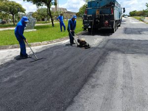 Todo o serviço é realizado de segunda a sábado, desde a limpeza do local, aplicação da massa asfáltica à quente e a compactação, para garantir a durabilidade necessária.