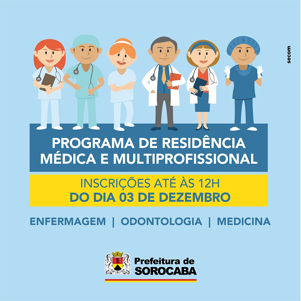 A Prefeitura de Sorocaba, por meio da Secretaria de Saúde (SES), divulgou nesta sexta-feira (13) o processo seletivo para novas turmas dos Programas de Residência Médica e Multiprofissional em Saúde. Ao todo são oferecidas 16 vagas, sendo quatro em Residência de Medicina de Família e Comunidade, além de 12 em Residência Multiprofissional em Saúde da Família e Comunidade.