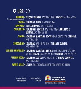 Os endereços e telefones de todas as UBSs que realizam a pesagem podem ser consultados pelo link: https://servicos.sorocaba.sp.gov.br/selu/. Confira também quais são os dias e horários de atendimento específicos para a pesagem em cada uma das UBSs: