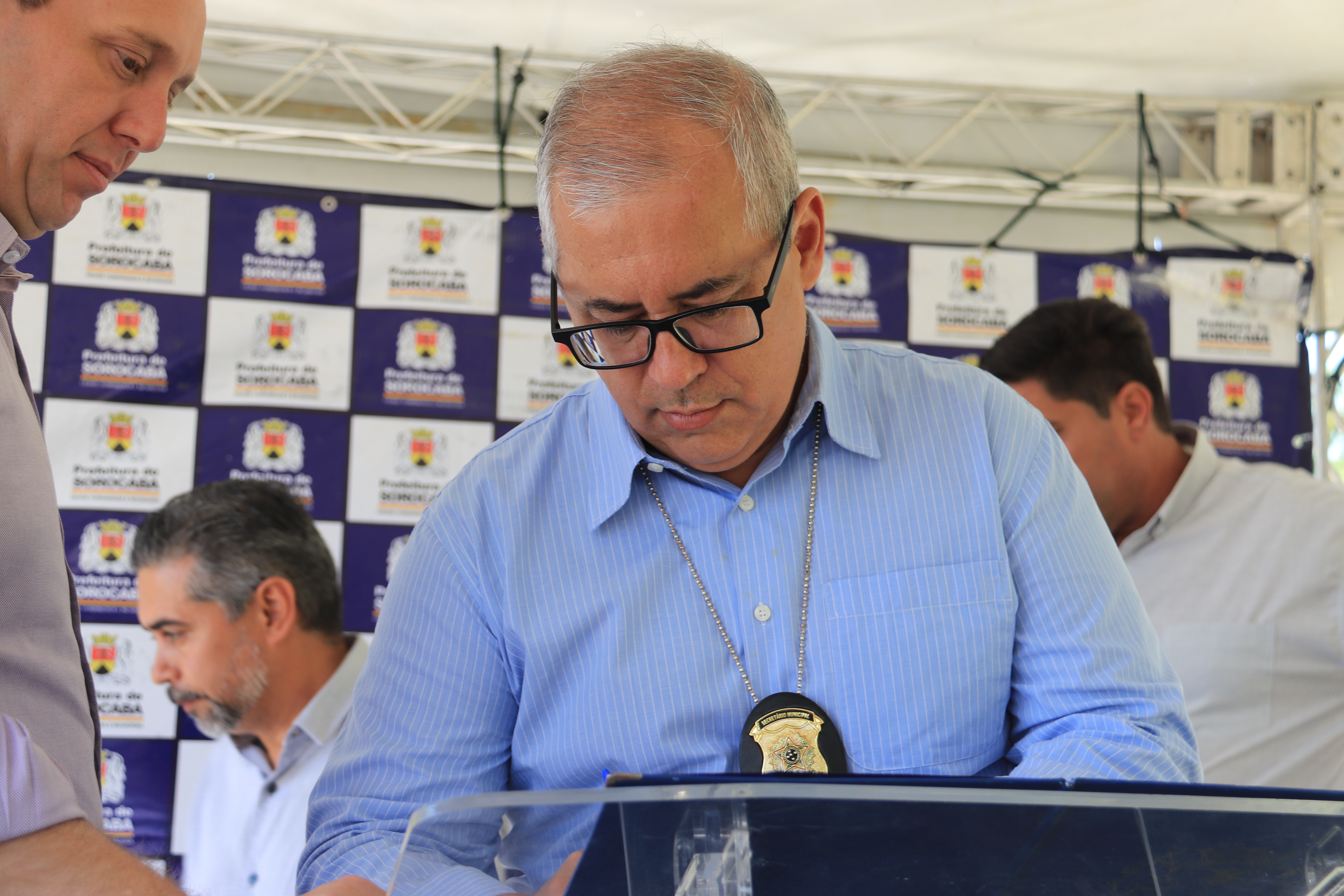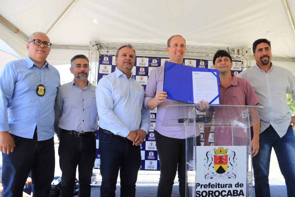 Além do prefeito Rodrigo Manga, do secretário municipal Darwin de Almeida Rosa (Serviços Públicos e Obras) e do ouvidor-geral do Município, Evandro Bueno, participaram da solenidade o secretário Alexandre Caixeiro (Segurança Urbana), o vereador Fausto Peres e o pastor Robson Vasconcelos, da Igreja Assembleia de Deus Filadélfia de Sorocaba.