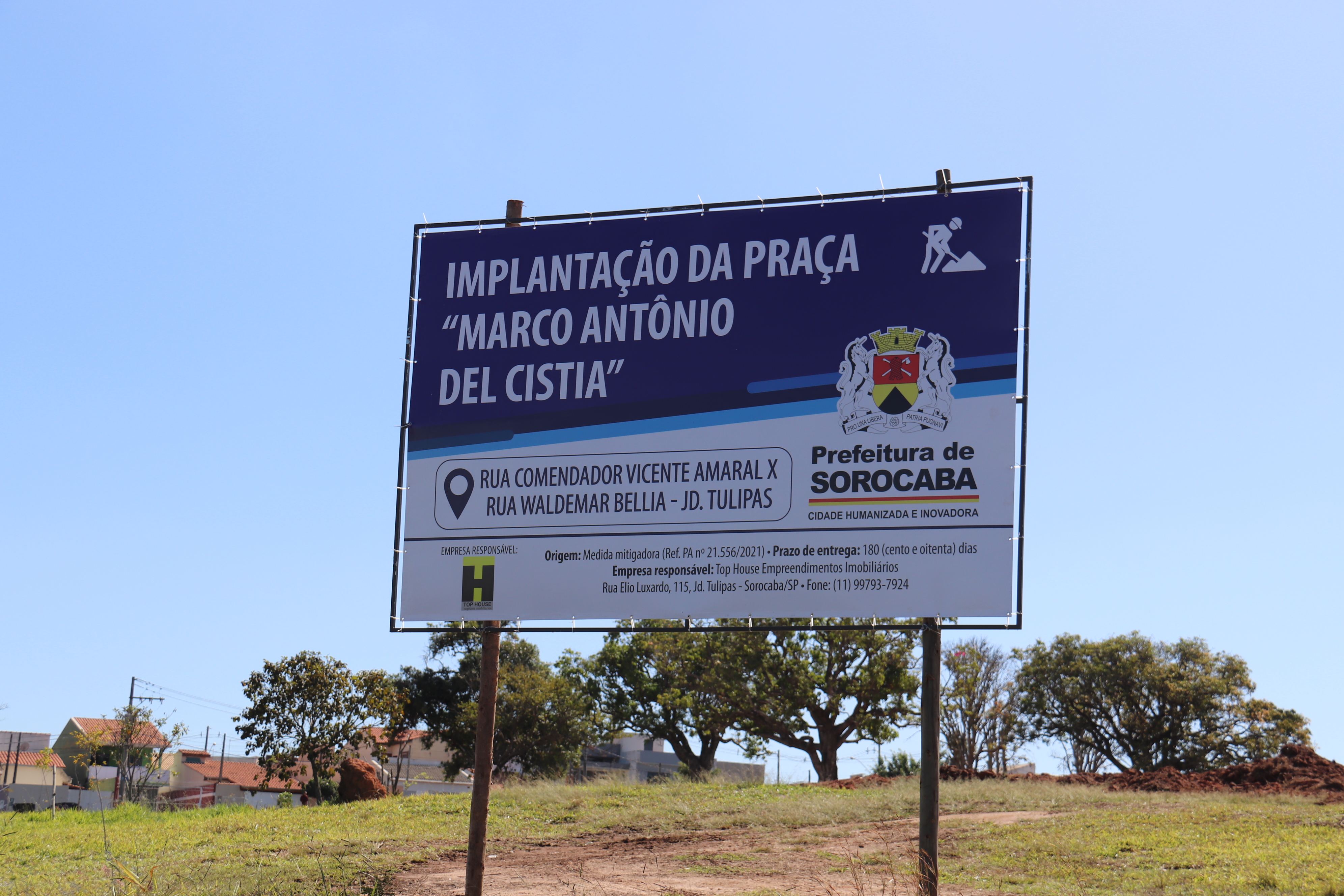 Com a presença de moradores do bairro, a Prefeitura de Sorocaba deu início, na manha desta sexta-feira (12), às obras de implantação da Praça “Marco Antônio Del Cístia”, no Jardim Tulipas, na Zona Oeste da cidade, como parte do programa “Sorocaba Linda de Verdade”. As melhorias serão executadas em parceria com a empresa Top House Empreendimentos Imobiliários, por meio de medida mitigadora.