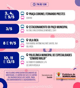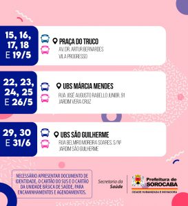 Prefeitura de Sorocaba divulga agenda de maio dos Ônibus Azul e Rosa da Saúde