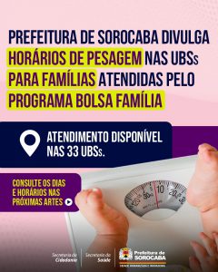 Prefeitura de Sorocaba divulga horários de pesagem nas UBSs para famílias atendidas pelo programa Bolsa Família
