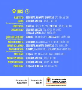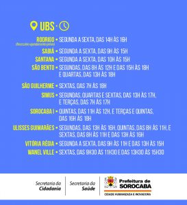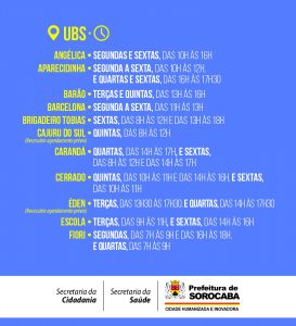 A Prefeitura de Sorocaba, por meio da Secretaria da Cidadania (Secid), divulga os dias e horários disponíveis nas UBSs (Unidades Básicas de Saúde) da cidade, para que as famílias registradas no Cadastro Único (CadÚnico) e beneficiárias do programa federal Bolsa Família possam realizar a pesagem solicitada a mulheres e crianças.