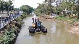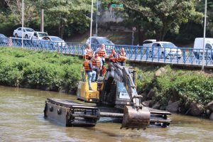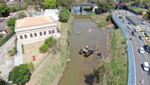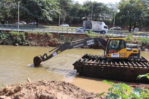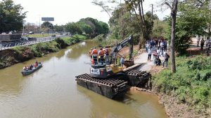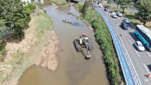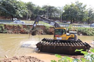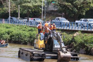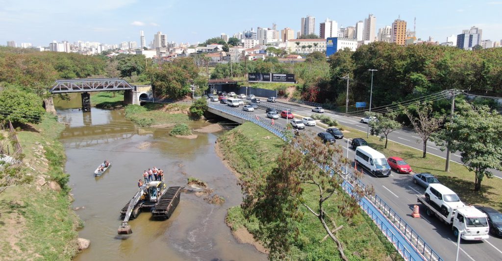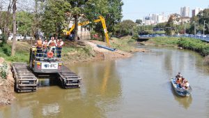 Prefeitura de Sorocaba e Saae ampliam obras de desassoreamento do Rio Sorocaba com maquinário do tipo flutuante