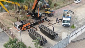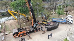 O maquinário chegou a Sorocaba no fim de semana, sendo que, nesta segunda-feira, teve início a fase de testes operacionais e de execução de acessos ao Rio Sorocaba, que continuará até sexta-feira (8). O prefeito acompanhou os trabalhos, junto do diretor-geral do Saae/Sorocaba, Tiago Suckow, do vereador Fausto Peres e equipes da Prefeitura e da autarquia. Na ocasião, também participaram os secretários municipais Darwin de Almeida Rosa (Serviços Públicos e Obras – Serpo), Alexandre Caixeiro (Segurança Urbana – Sesu) e Fernanda Burattini (Comunicação – Secom), além do ouvidor-geral do Município, Evandro Bueno; do Comandante da Guarda Civil Municipal (GCM), Davi Dutra, e diretores e demais profissionais da Prefeitura e do Saae/Sorocaba.