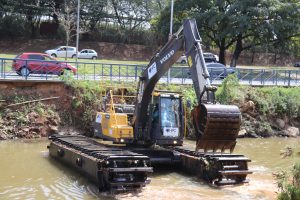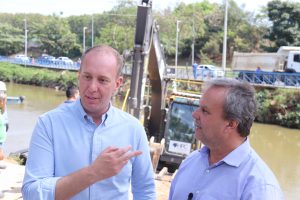 A operação total, a todo vapor, com as dragas, no trecho atual do rio, estará acontecendo até a próxima segunda-feira (11). A obra será executa em parceria com a Geratriz Construtora, mediante medida mitigadora, no valor de R$ 400 mil, como contrapartida a investimentos feitos empresa na área habitacional. “Estamos colaborando com o Município, adiantando essa contrapartida, pois entendemos a necessidade de deixar tudo preparado para o período de chuvas”, disse o diretor-executivo da empresa, Lucas Teles, junto do irmão, Railton Teles, que é gerente de obras.