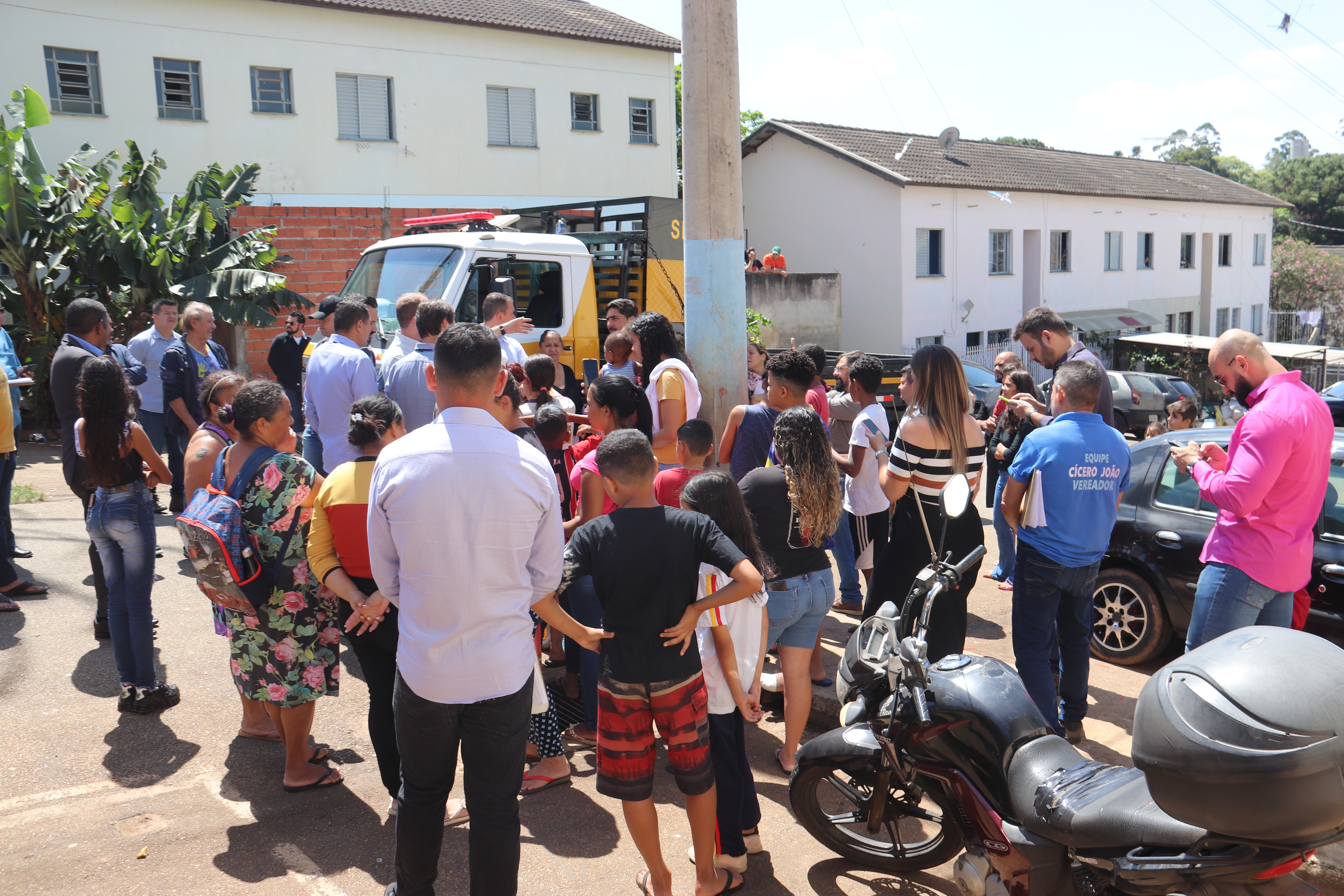 O prefeito Rodrigo Manga fez o anúncio da melhoria aos moradores do residencial, ao lado dos secretários Darwin de Almeida Rosa (Serviços Públicos e Obras – Serpo), Carlos Eduardo Paschoini (Mobilidade – Semob) e Douglas Moraes (Jurídico – SEJ), mais o diretor-geral do Saae/Sorocaba, Tiago Suckow, o ouvidor-geral do Município, Evandro Bueno, e os vereadores Caio Oliveira, Fábio Simoa e Rodrigo do Treviso.