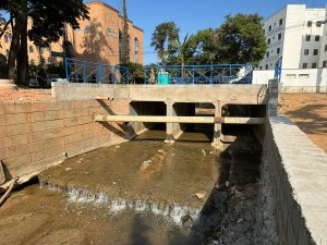 Também foram construídos quatro muros de alas, dois em cada lado do sistema, feito todo o aterramento, calçadas, guias de concreto e gradil. E, também em parceria com a Secretaria de Serviços Públicos e Obras e a Secretaria de Mobilidade, houve a pavimentação asfáltica e a sinalização para completar a nova travessia.