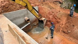 Houve a substituição da tubulação sob a ponte, por aduelas de concreto armado, de maior porte e que permitem maior vazão para o córrego, contribuindo, assim, para a drenagem da área. Cada peça foi movimentada com o auxílio de um guindaste hidráulico, escavadeira hidráulica e demais equipamentos específicos. Foram instaladas 30 aduelas de concreto armado (alinhadas três linhas de dez unidades), onde cada peça mede 2,5 metros de largura por 2,5 metros altura e um metro de comprimento.