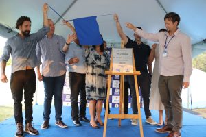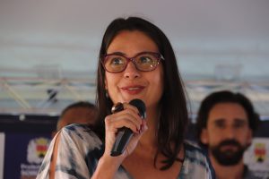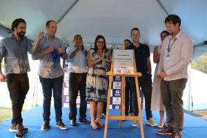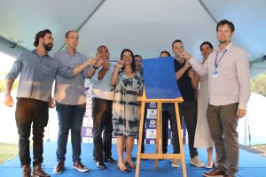 A presidente do MACS, Silvia Stecca, representou a empresa da família, *a então Comercial Construtora Stecca, que foi a responsável pela construção da ETA Cerrado, em 1970, e de outras obras importantes na cidade, como o edifício do Paço Municipal. “Fico feliz ao ver uma obra em um espaço urbano, como este, por meio de um movimento de apoio à Arte”, disse.