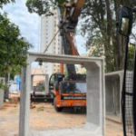 Além da Rua Eulália Silva, a administração municipal também está mobilizada para a substituição da travessia localizada na Rua Professora Guida Mares, no Central Parque. No último fim de semana, foram instaladas 30 aduelas de concreto armado, cada uma medindo 3 metros de largura por 3 metros altura e um metro de comprimento. Cada peça foi movimentada com o auxílio de um guindaste hidráulico, escavadeira hidráulica e demais equipamentos específicos.