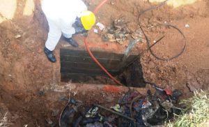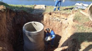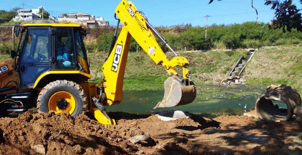 Durante a ação, foi utilizada uma retroescavadeira para abertura do acesso à caixa de escoamento, retirando todo tipo de resíduo acumulado e também foi readequada a estrutura para facilitar ações de vistoria futuras.