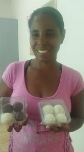 Claudineia, moradora do Altos do Ipanema II, faz salgados e vende na própria comunidade onde mora. “Com o curso, aprendi a administrar o meu negócio, coisa que eu tinha dificuldade antes. E, com a boa aceitação dos meus salgados pelo público, espero poder crescer como profissional”, comemora a nova empreendedora.
