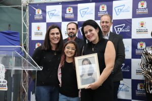 A pequena Manuela Porto, sobrinha da professora que agora nomeia o novo Centro de Educação Infantil, também fez um gesto simbólico e entregou, nas mãos da diretora da unidade, um quadro com uma foto de Ana Carolina, que ficará afixado em lugar de honra na escola.