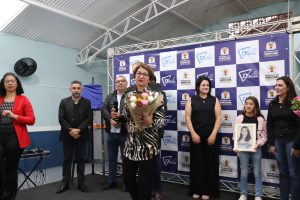 À irmã da homenageada coube relembrar as muitas qualidades da professora que deixou seu legado, passando a nomear o novo CEI. “Se fosse para falar de suas qualidades, eu ficaria aqui a noite toda. Mas vou falar do seu papel como professora. A Ana Carolina, nossa Carolzinha, como chamávamos, iniciou muito cedo sua carreira no magistério e amava a Educação Infantil, o ambiente da escola. Foi dedicada, paciente e uma grande contadora de histórias. Ela, com certeza, merece ter seu nome eternizado em uma escola linda de verdade, como esta. Agradecemos à Prefeitura e ao prefeito Rodrigo Manga por isso”, concluiu Angélica.