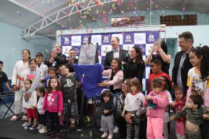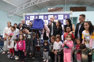 Muitos moradores locais também participaram da solenidade e, ao final, o prefeito Rodrigo Manga convidou todas as crianças presentes para subirem ao palco e fazerem parte da foto oficial e do descerramento da placa inaugural da nova creche.