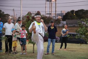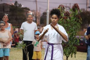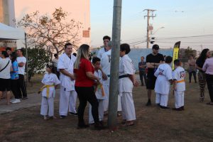 Durante o evento, os alunos da Academia Caminho de Okinawa, escola de artes marciais do bairro, demonstraram as práticas realizadas durante os treinos. O momento foi de muita alegria e comemoração para todos aqueles que aguardavam pelo novo espaço.