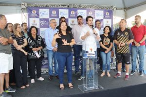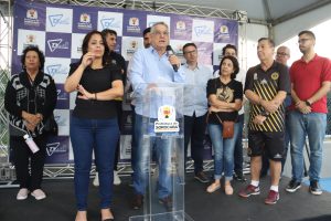 “Essa é uma obra que dependeu da liberação de recurso federal, por meio da Caixa Econômica Federal (CEF). O novo local proporciona lazer e mais oportunidades de convívio, além de ser um ambiente adequado para a prática esportiva”, destacou o secretário de Serviços Públicos e Obras (Serpo), Darwin de Almeida Rosa, que representou o prefeito Rodrigo Manga no evento.