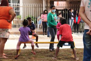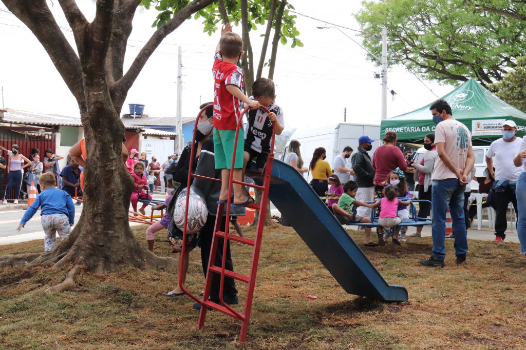 A praça da Vila Tupã recebeu a implantação de brinquedos e bancos novos, além de limpeza, gramado e paisagismo, lombada e sinalização de solo, pela Urbes – Trânsito e Transportes.