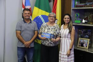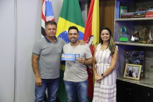 O chefe de Divisão da Sefaz, Doingles Moraes, que representou o secretário da Fazenda, Marcelo Regalado, também falou da importância do programa municipal. “Esse programa é extremamente importante, pois estimula o contribuinte a pagar os seus impostos em dia e, com esse recurso, o Município desenvolve políticas públicas de excelência à população”, afirmou, ao lado da chefe de Divisão da Sefaz, Magda Lourenson, e do chefe de Seção da Sefaz, Lucas Prestes.