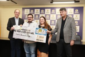 “É uma alegria muito grande estar aqui, hoje, com vocês. Parabéns à Secretaria da Fazenda e a vocês, munícipes, que aderiram ao programa e estão contribuindo com o desenvolvimento da nossa cidade. Que vocês possam usufruir desse prêmio e incentivar que mais pessoas também participem da ‘Nota Fiscal da Bolada’”, destacou o prefeito Rodrigo Manga.