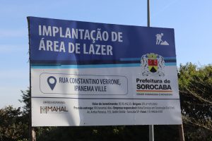 Quanto à implantação da área de lazer no bairro Ipanema Ville, a mesma ocorreu em ponto na Rua Constantino Verrone, incluindo praça, academia ao ar livre com oito equipamentos de ginástica e placas de orientação, além de playground, com dois tipos de balanço, escorregador, gangorra e iluminação com lâmpadas em LED.