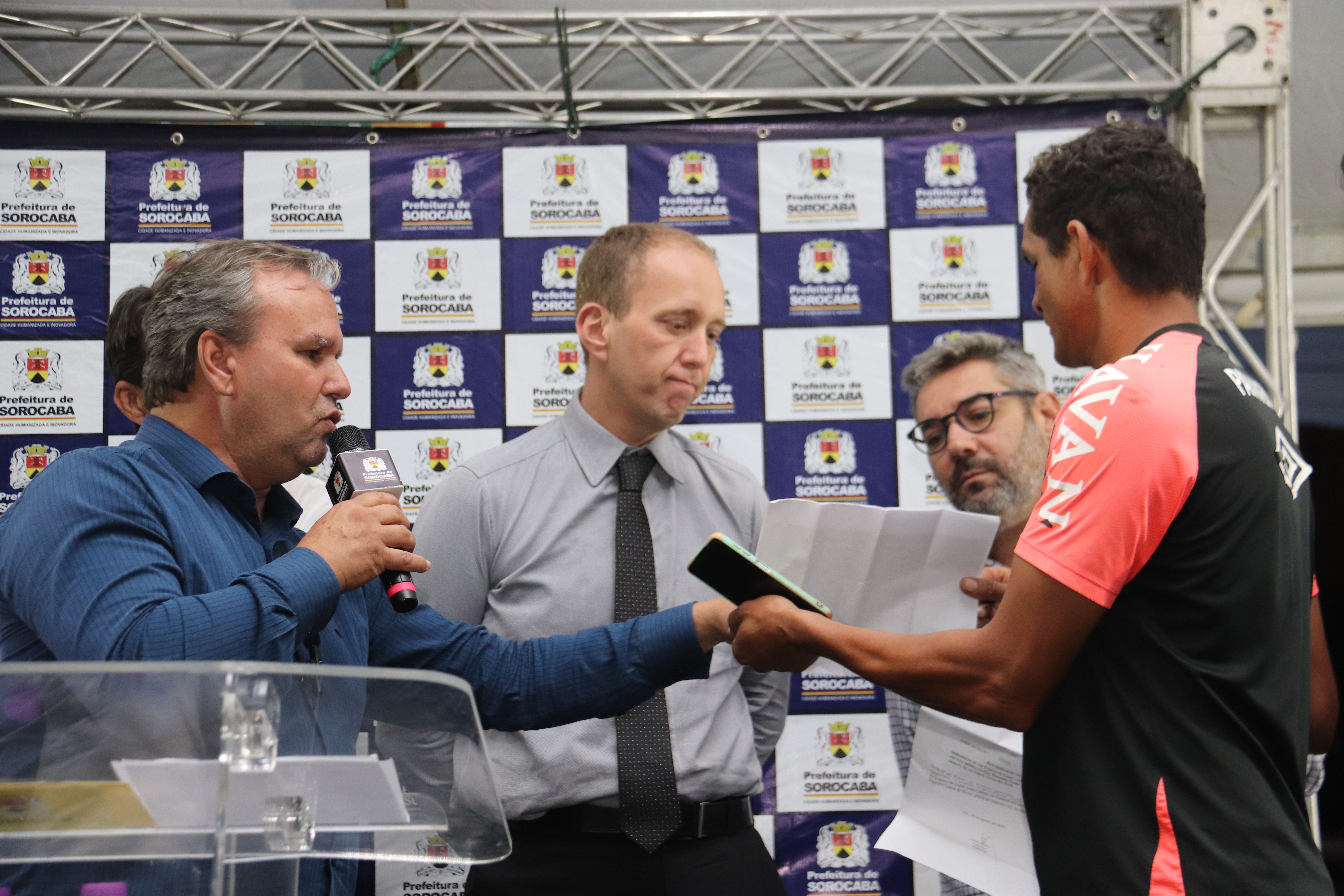 Além do prefeito Rodrigo Manga e dos secretários municipais Darwin de Almeida Rosa (Serpo) e Carlos Eduardo Paschoini (Semob), participaram da solenidade o secretário de Relações Institucionais e Metropolitanas (Serim), Luiz Henrique Galvão, o diretor-presidente da Urbes, Sergio Barreto, o ouvidor-geral do Município, Evandro Bueno, o vereador Fausto Peres e o líder comunitário do Sorocaba Park, Sérgio Locutor. Já, a Predial Novo Mundo foi representada pelo seu diretor comercial, José Aníbal Fernandes, e pelo engenheiro Igor Lage de Moraes.